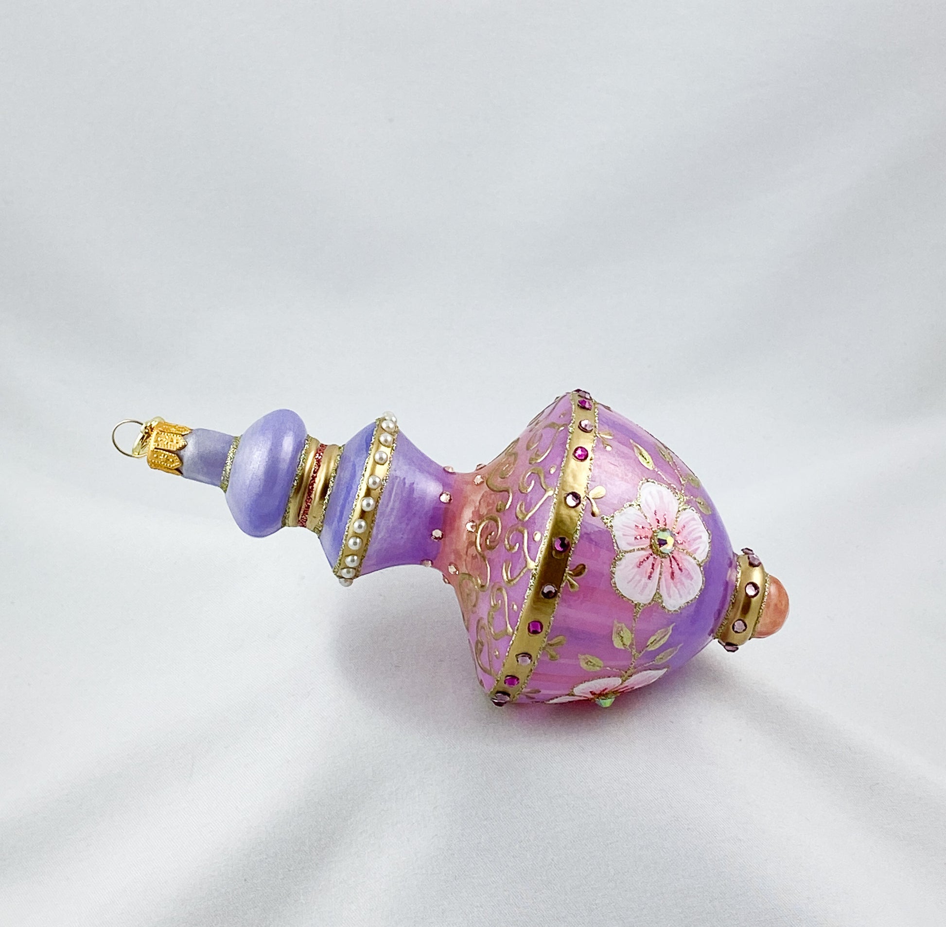 Hourglass shape in lavender and purple with pink flowers and glitter stones, GlitterLab