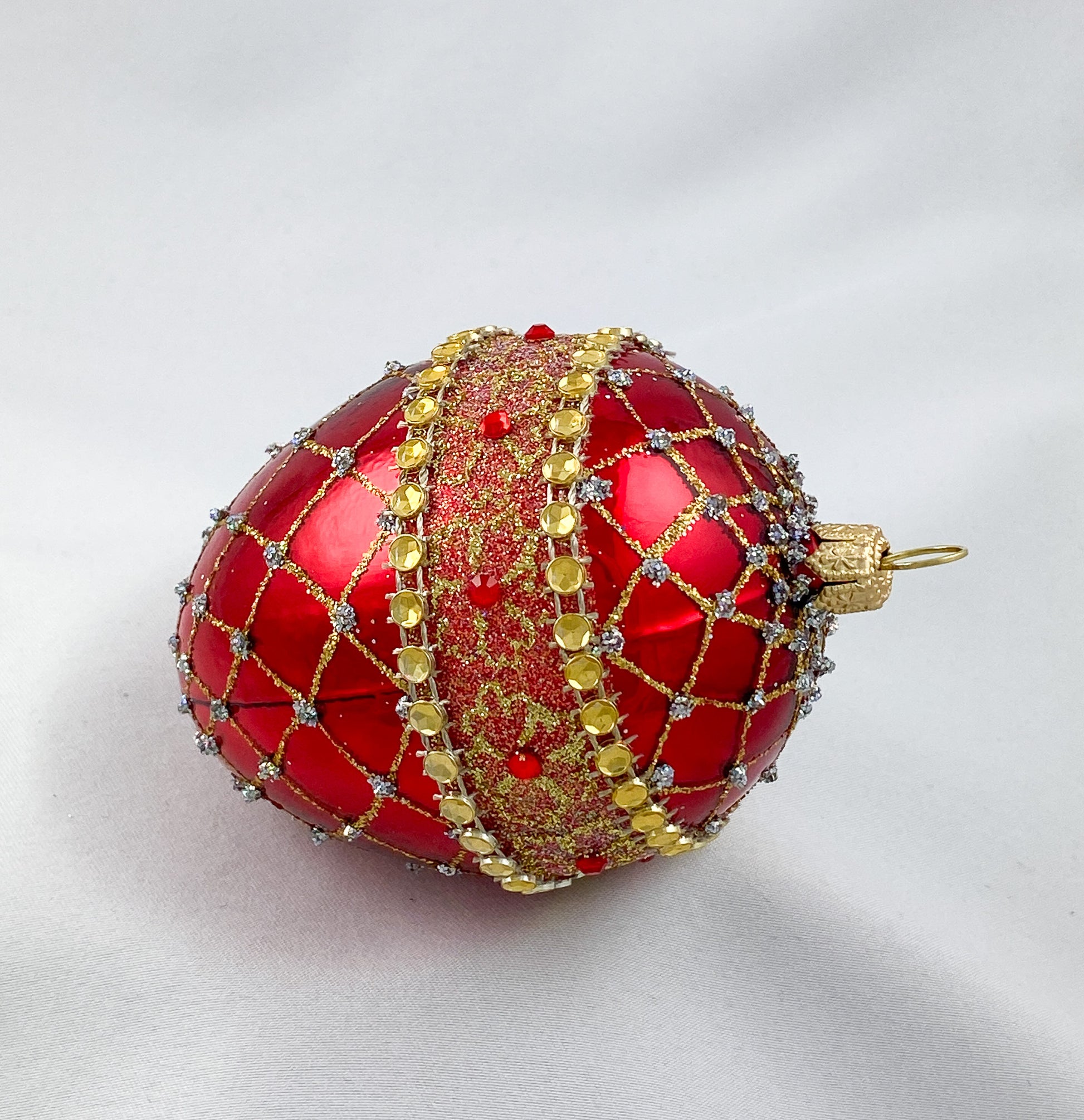 Ei-Form glänzendes Rot mit Gold-Brokat Dekor