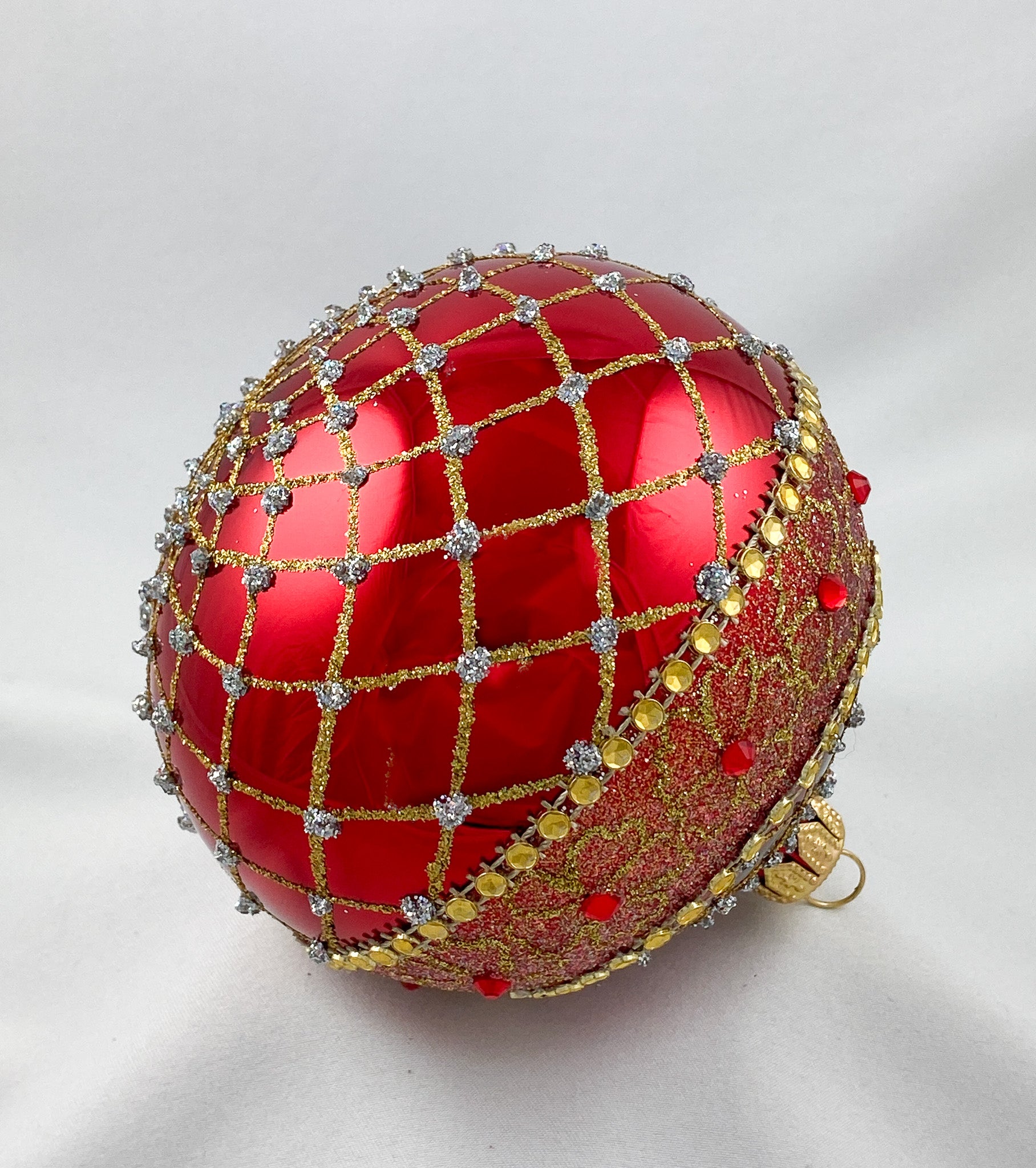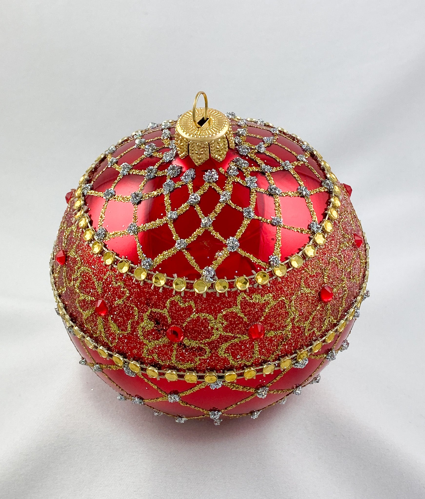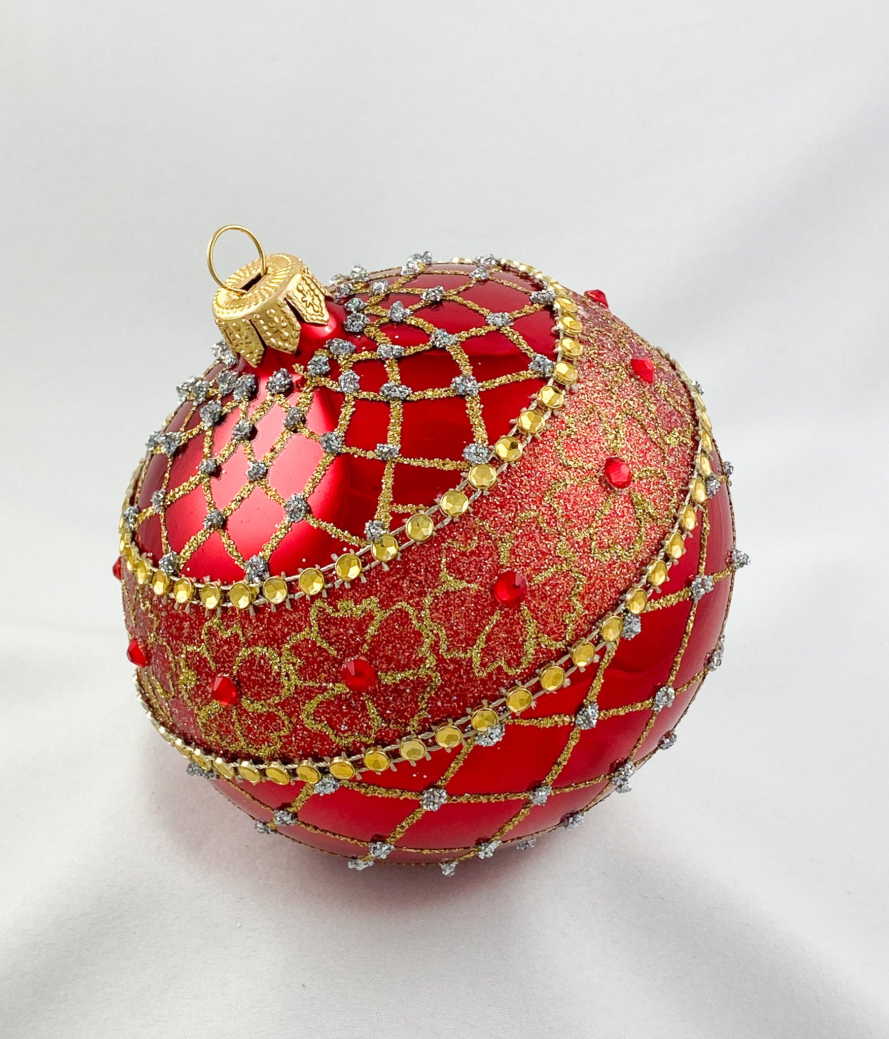 Kugel glänzendes Rot mit Gold-Brokat Dekor