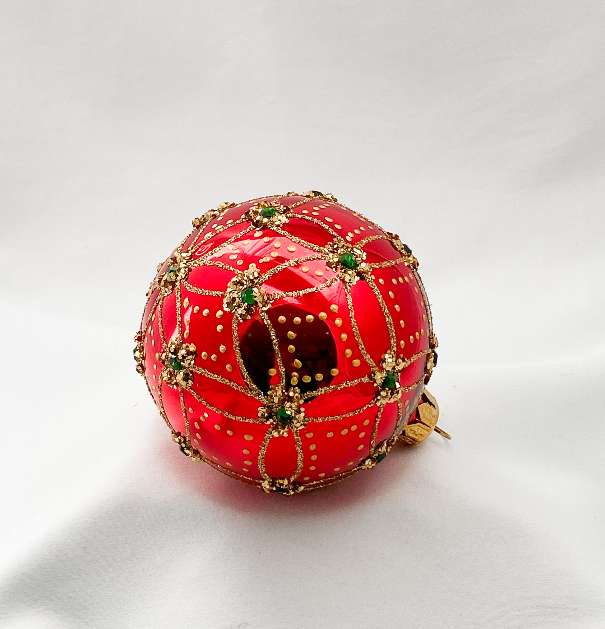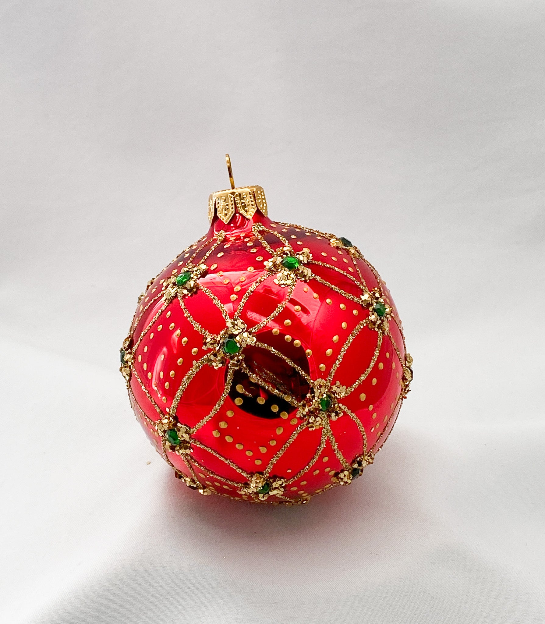 Kugel rot glanz mit grünen Steinen