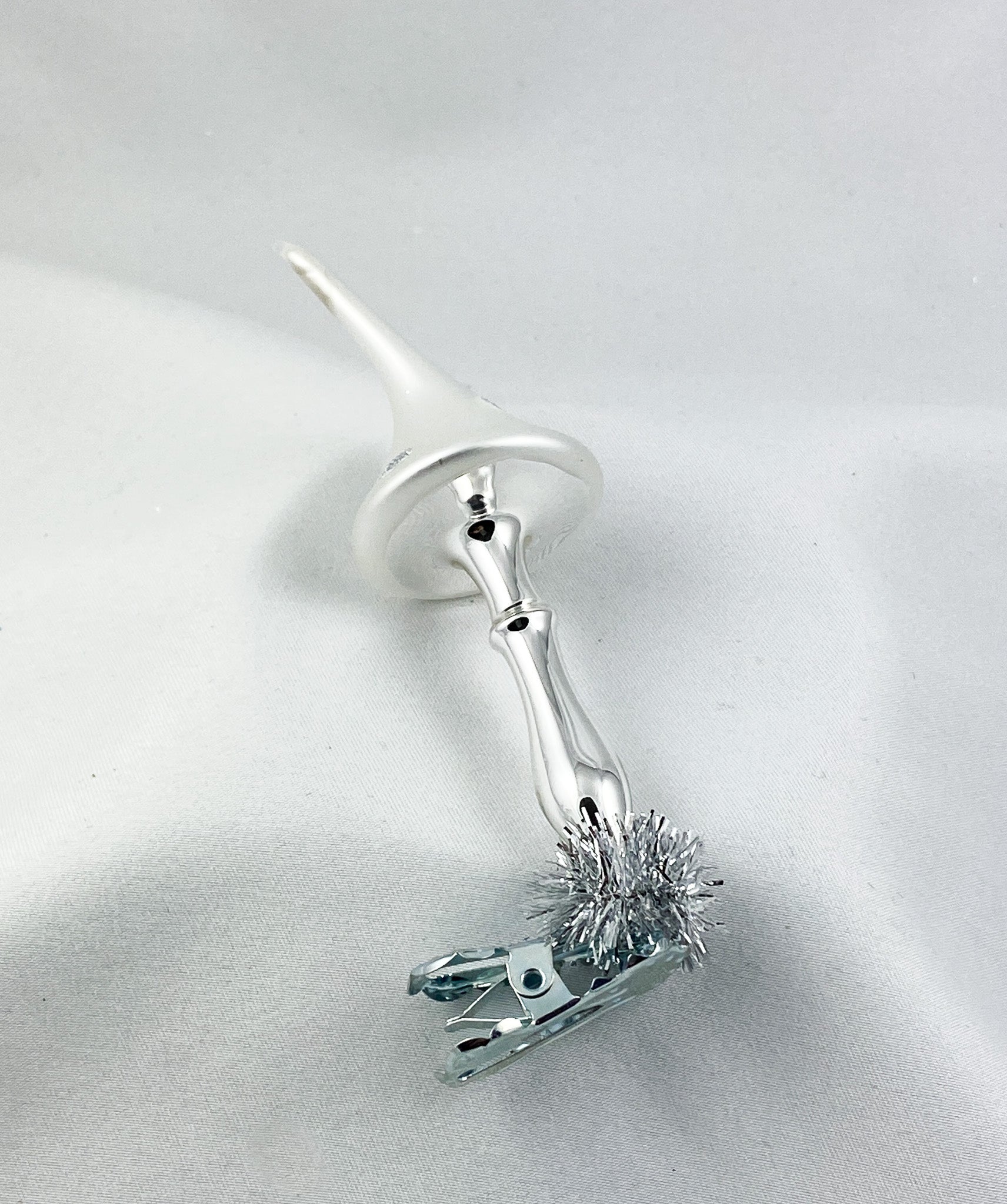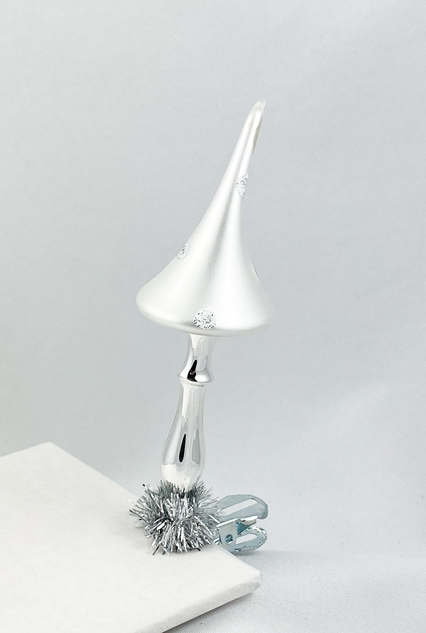 Silberner Pilz mit weissem spitzem Hut auf Clip