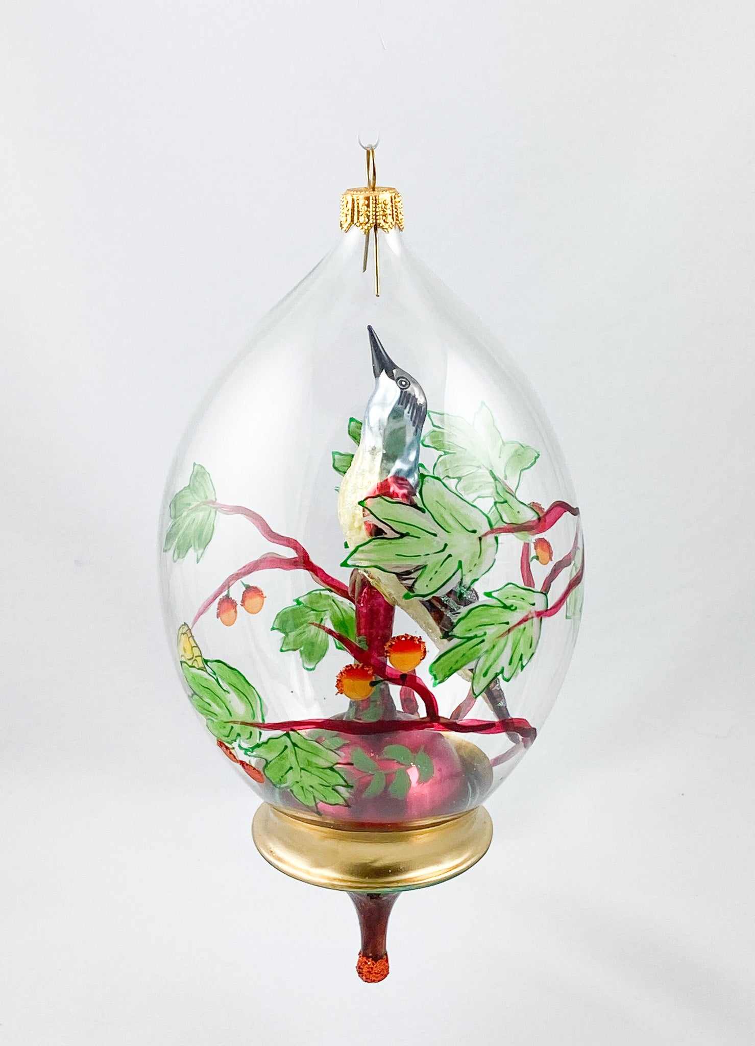 Singvogel in Kugel mit Schmetterling und Rankendekor