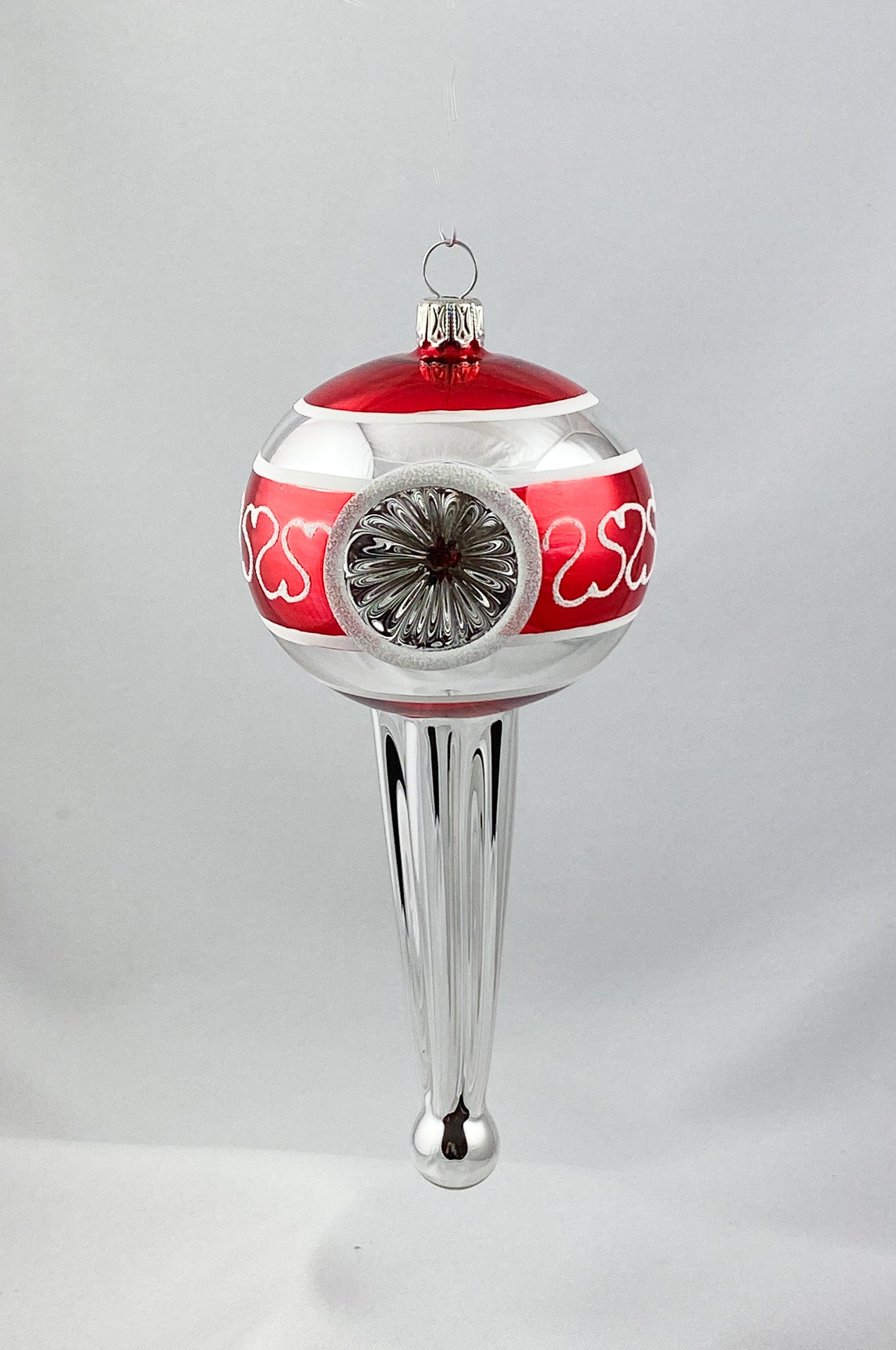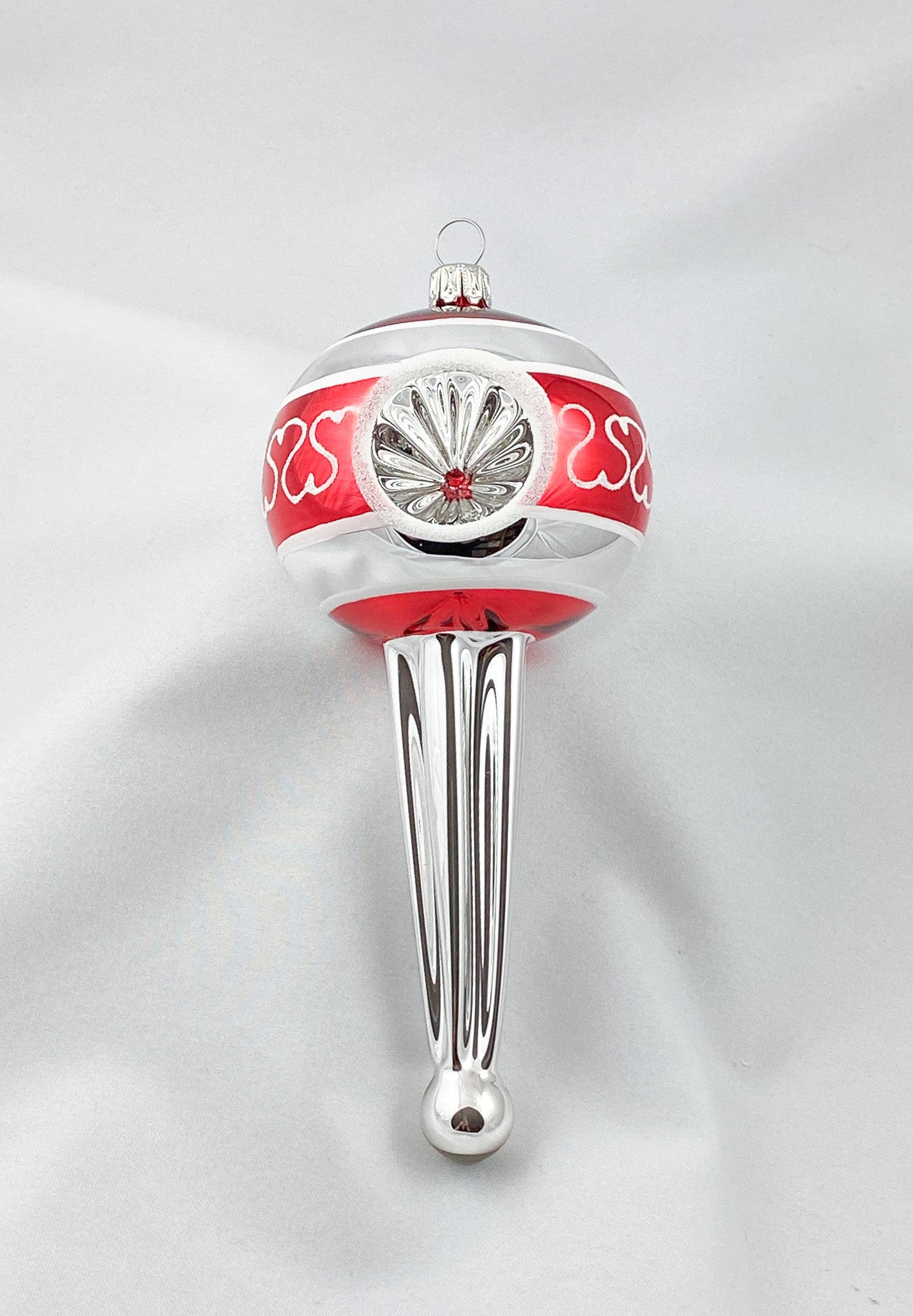 Stilisiertes Zapfenmotiv mit drei Reflexen in Rot und Silber