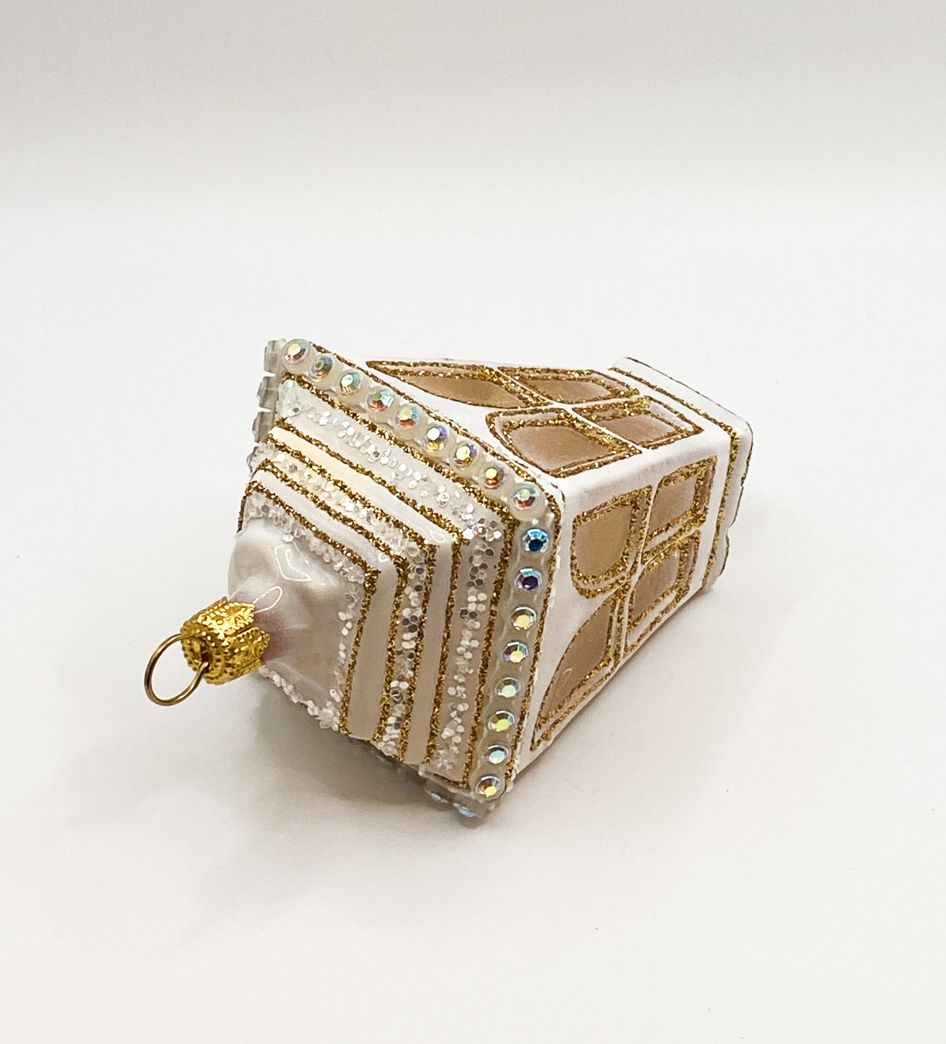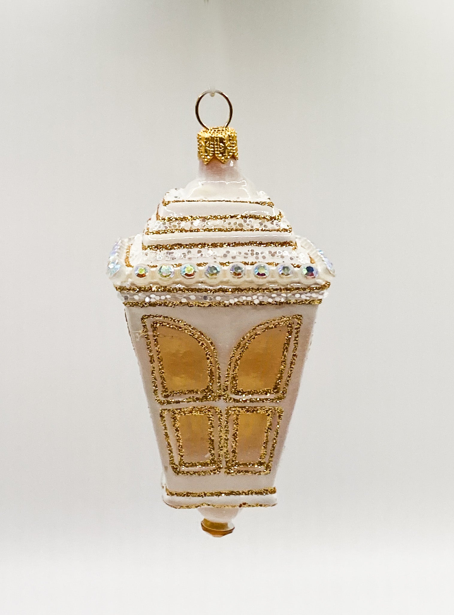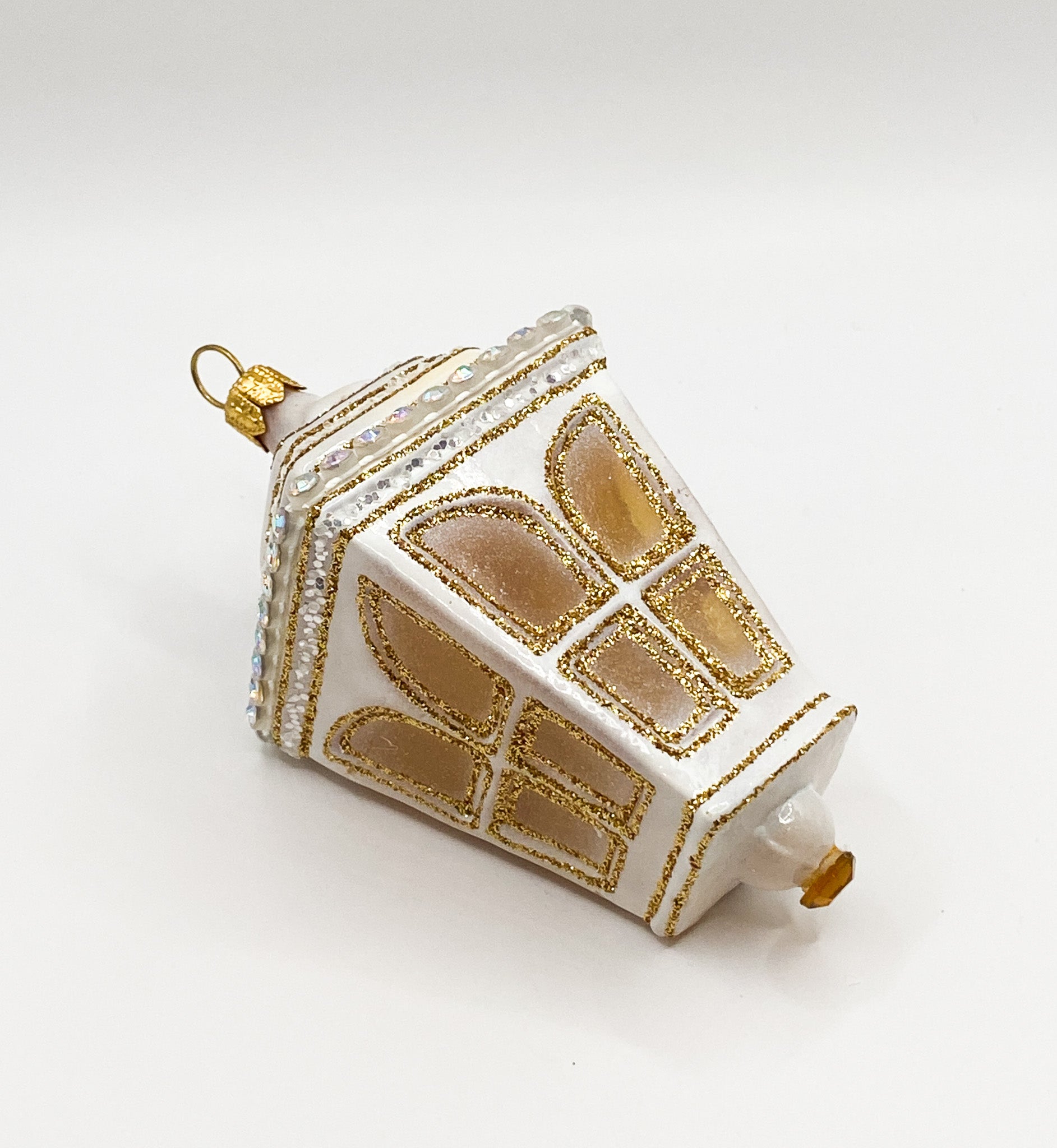 Weisse Laterne mit Glitzer-Schmucksteinen